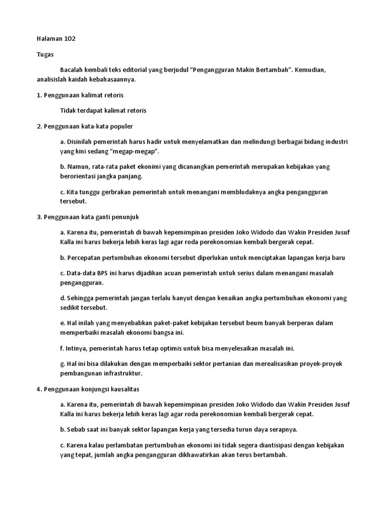Dua kalimat di atas merupakan respon, tanggapan, atau sudut pandang redaksi terkait data dan fakta yang mereka suguhkan. Berisi ulasan permasalahan yang dimuat dalam surat kabar. Pembahasan · aktual yaitu suatu teks editorial yang di tulis atau yang dimuat berdasarkan kejadian yang sesungguhnya. Fenomenal/fe·no·me·nal/ /fénoménal/ a luar biasa; Permasalahan yang dibahas dalam teks editorial adalah permasalahan yang berkaitan dengan peritiwa (berita) yang sedang hangat dibicarakan (aktual), fenomenal, .